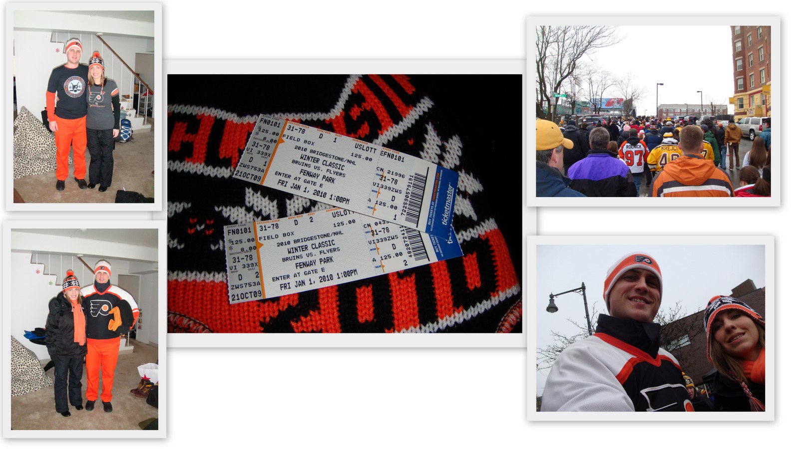 We headed down to Fenway the day before (New Year's Eve) to get official hats and to check out the festivities. We had a couple of inches of snow (during the team practices) which is awesome.